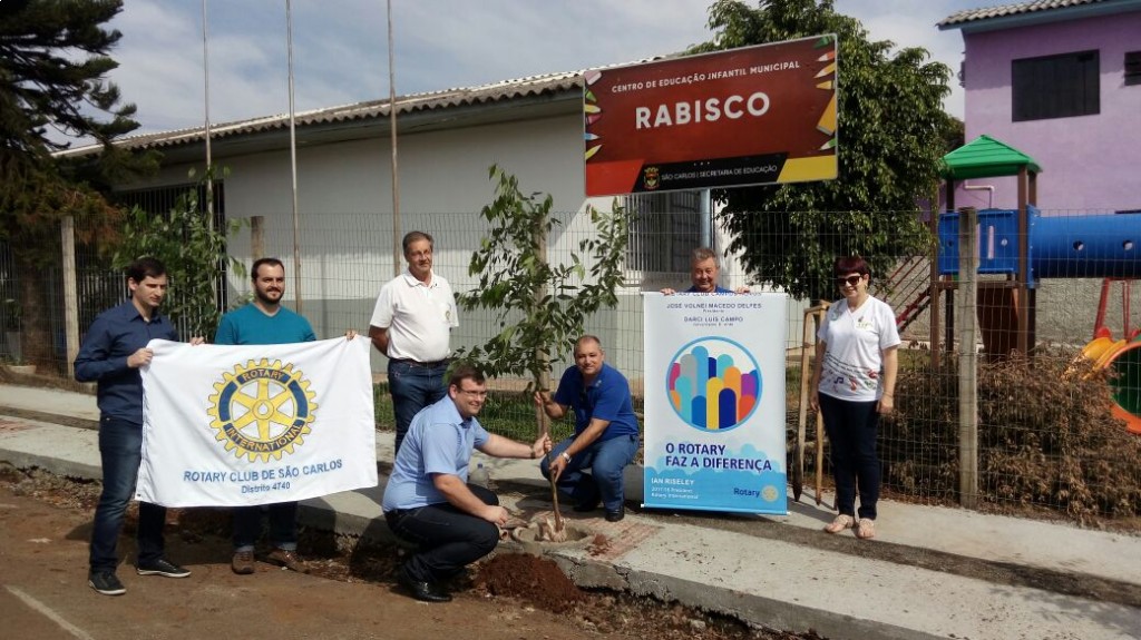 Os rotarianos visitantes foram recepcionados pelos companheiros de São Carlos no Portal da Cidade, de onde seguiram para uma ação conjunta que resultou no plantio de de árvores em frente a Centro Educação Infantil Rabisco, no Bairro Cristo Rei.
